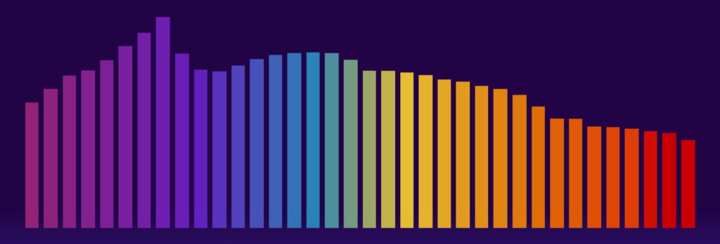 Think of the harmonic volumes as the “EQ” or “filter” for the sound. It’s a pattern that will move up and down depending on the key played.